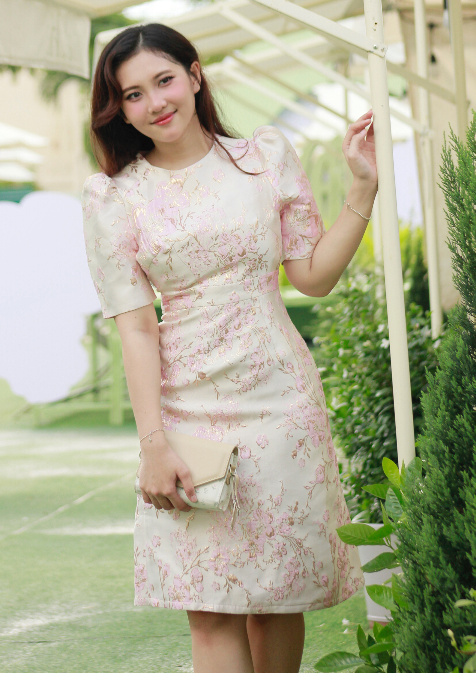 Thiết kế form A nữ tính với cổ tròn kín đáo, tay phồng nhẹ và chiết eo gọn gàng, mang đến vẻ hiện đại nhưng vẫn đầy tinh tế. Khóa kéo ẩn sau lưng giữ sự chỉn chu, tôn trọn đường nét thanh thoát.