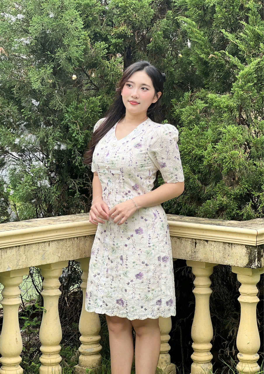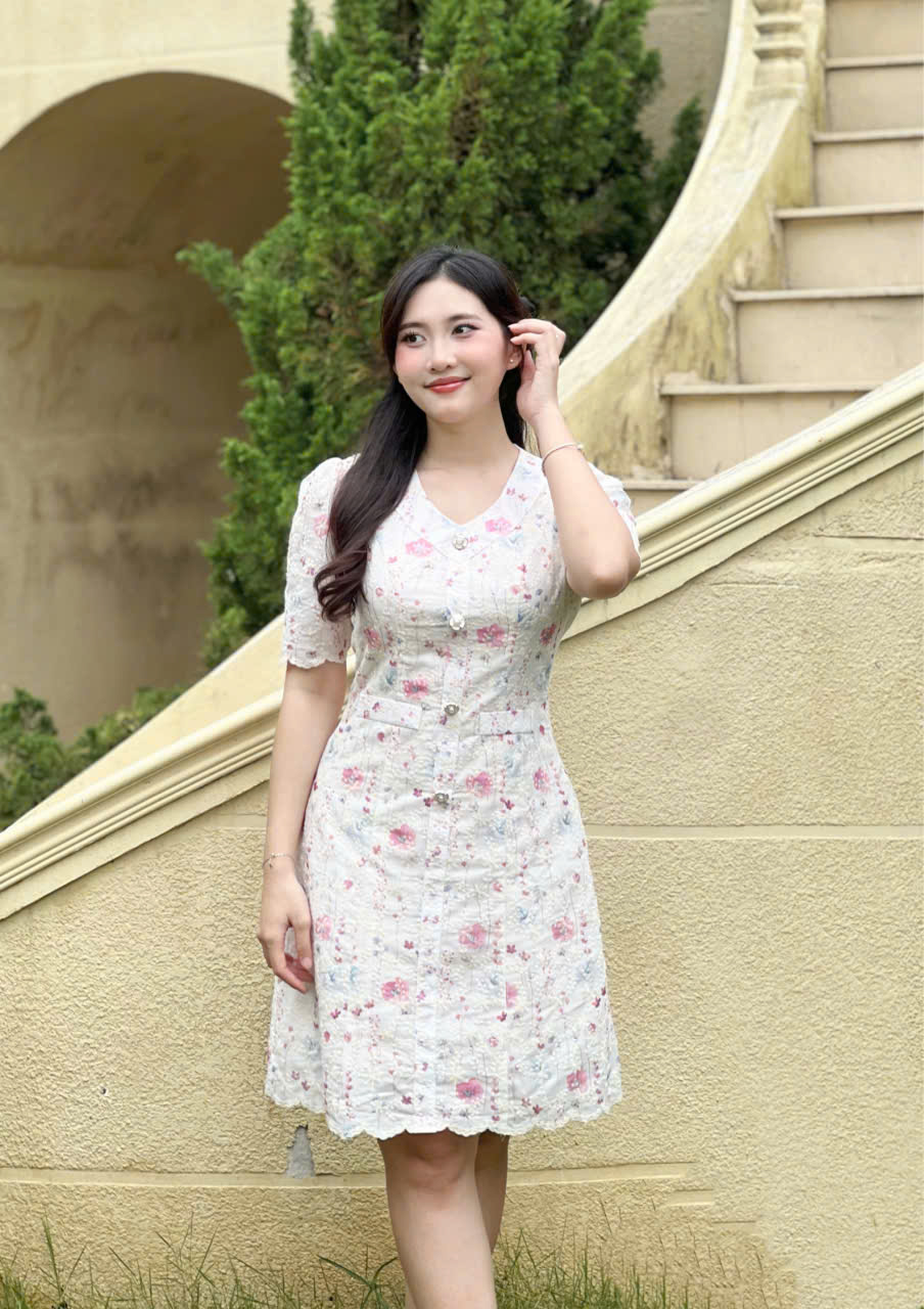 - Kiểu dáng: Đầm xòe nhẹ dáng