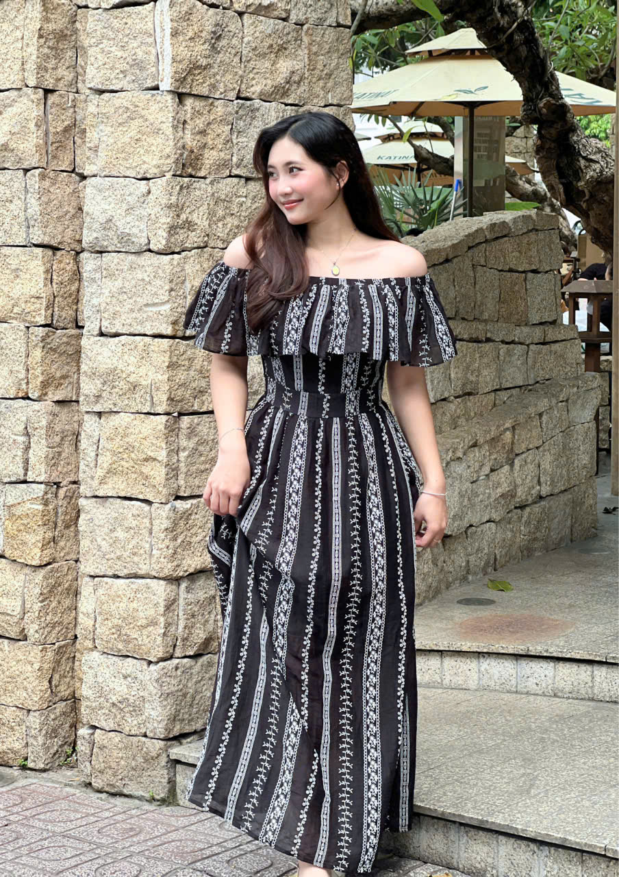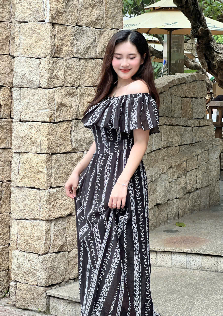 Phần vai trễ kết hợp bèo nhún duyên dáng giúp tôn lên bờ vai và xương quai xanh một cách mềm mại. Chất liệu Crepe in hoa nổi tạo bề mặt vải tinh tế, thoáng mát và bay bổng, mang lại cảm giác thoải mái nhưng vẫn giữ được nét sang trọng. Hai gam màu trắng và đen cơ bản giúp nàng dễ dàng lựa chọn và ứng dụng được trong buổi . ✨