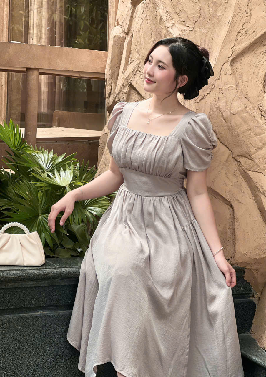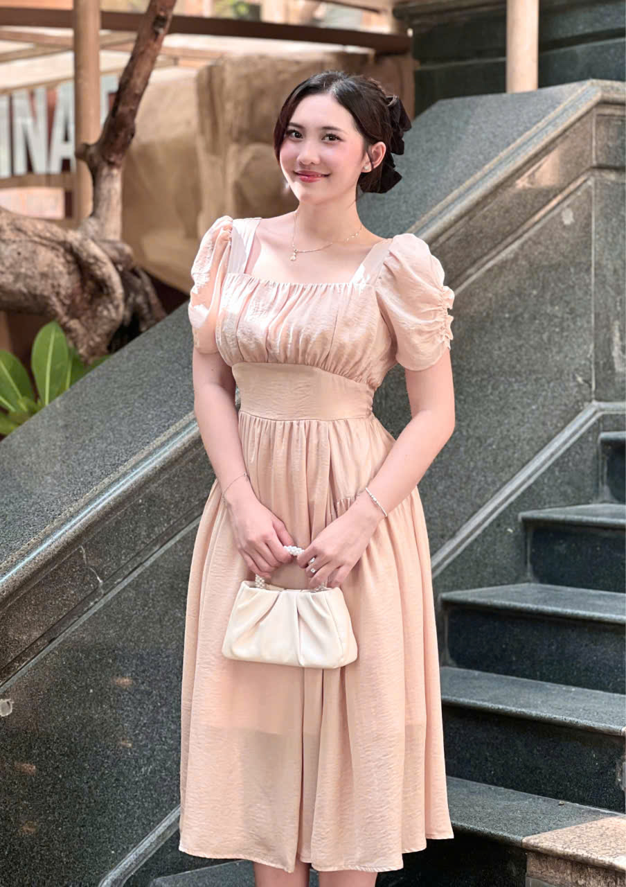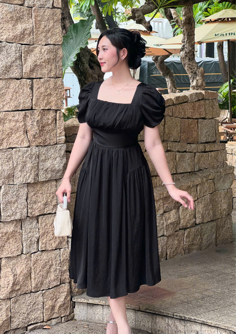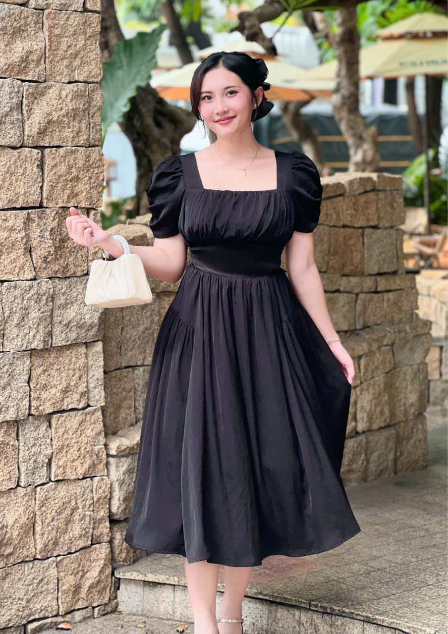 Thiết kế đầm dáng xoè thanh lịch, nhẹ nhàng nhưng vẫn đủ nổi bật cho những dịp thường ngày hay gặp gỡ. Điểm nhấn nằm ở phần cổ vuông kết hợp tay bồng mềm mại, giúp tổng thể thêm phần nữ tính và cuốn hút. Form váy xoè vừa phải mang lại cảm giác thoải mái, bay bổng khi mặc.