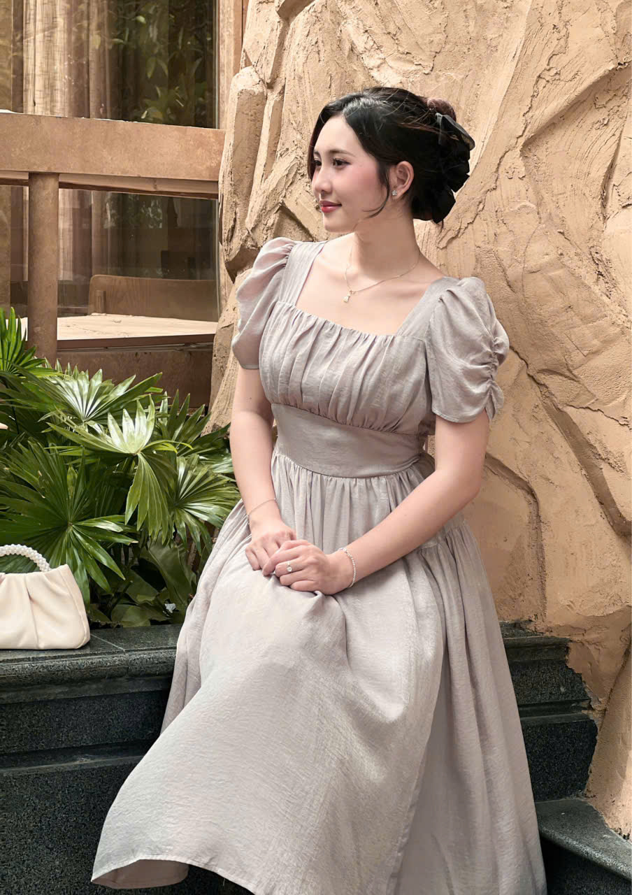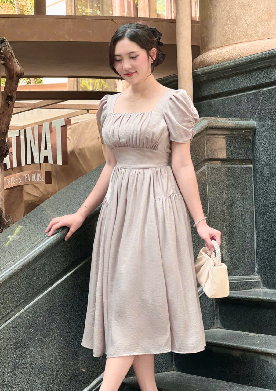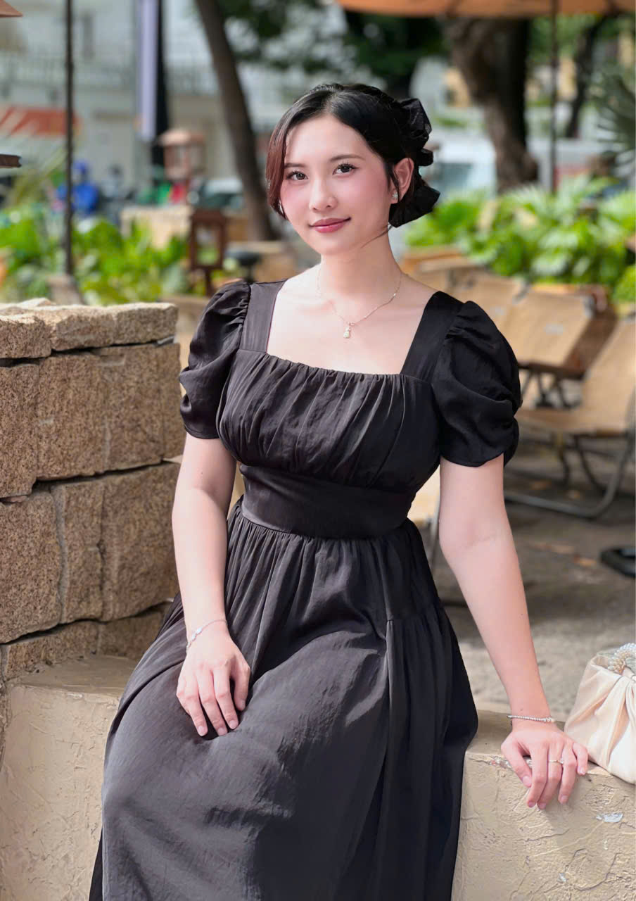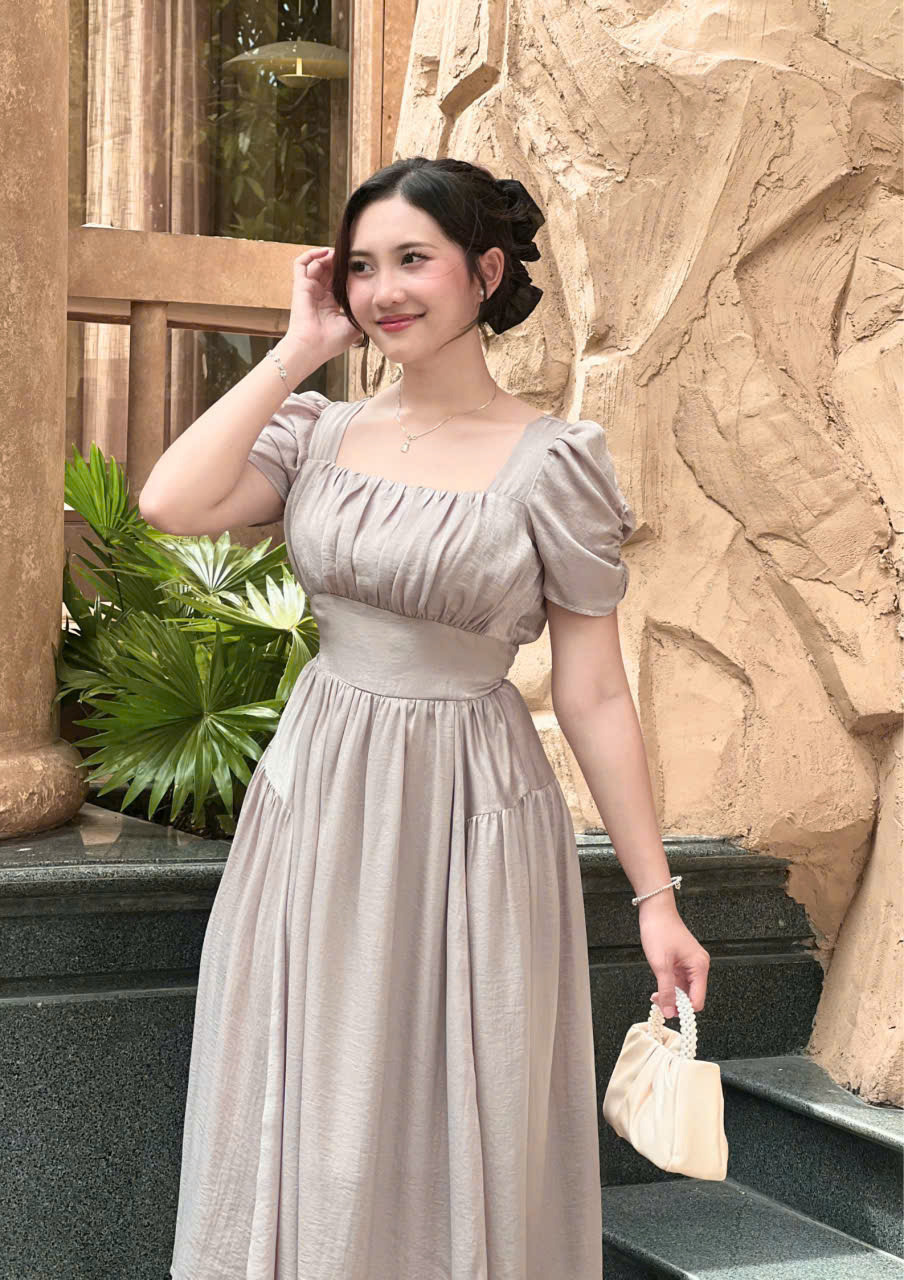 Thiết kế đầm dáng xoè thanh lịch, nhẹ nhàng nhưng vẫn đủ nổi bật cho những dịp thường ngày hay gặp gỡ. Điểm nhấn nằm ở phần cổ vuông kết hợp tay bồng mềm mại, giúp tổng thể thêm phần nữ tính và cuốn hút. Form váy xoè vừa phải mang lại cảm giác thoải mái, bay bổng khi mặc.