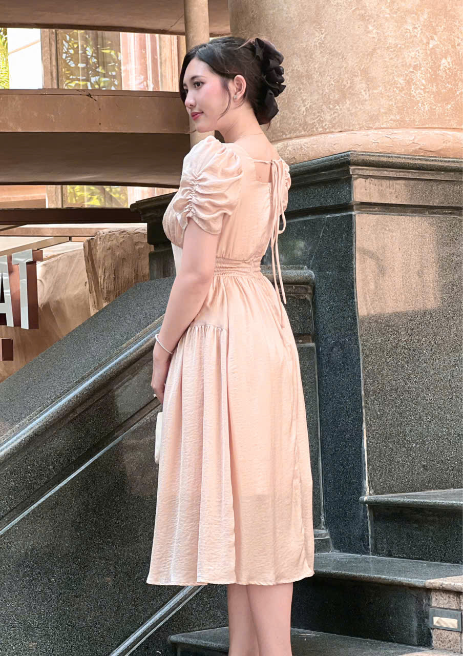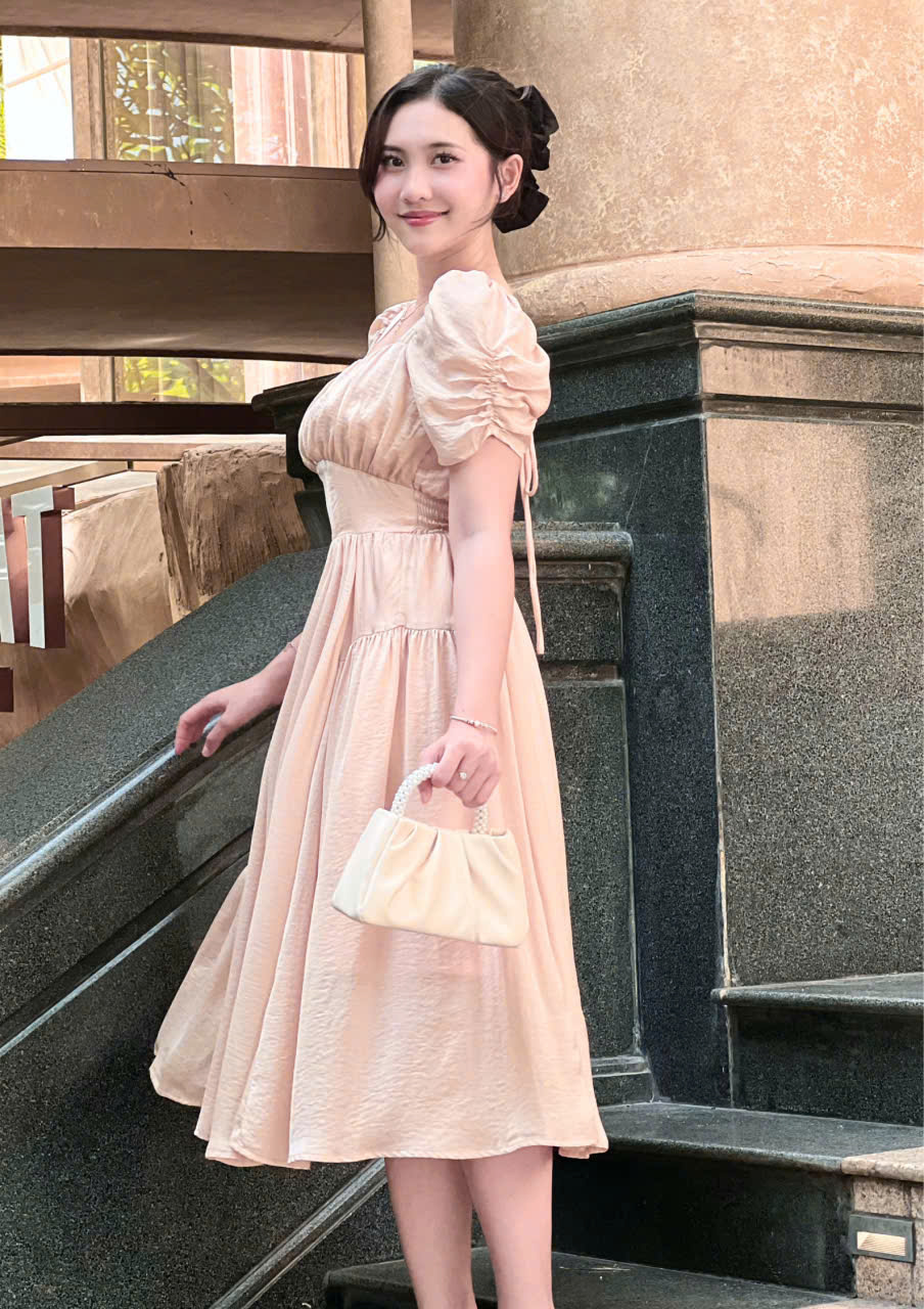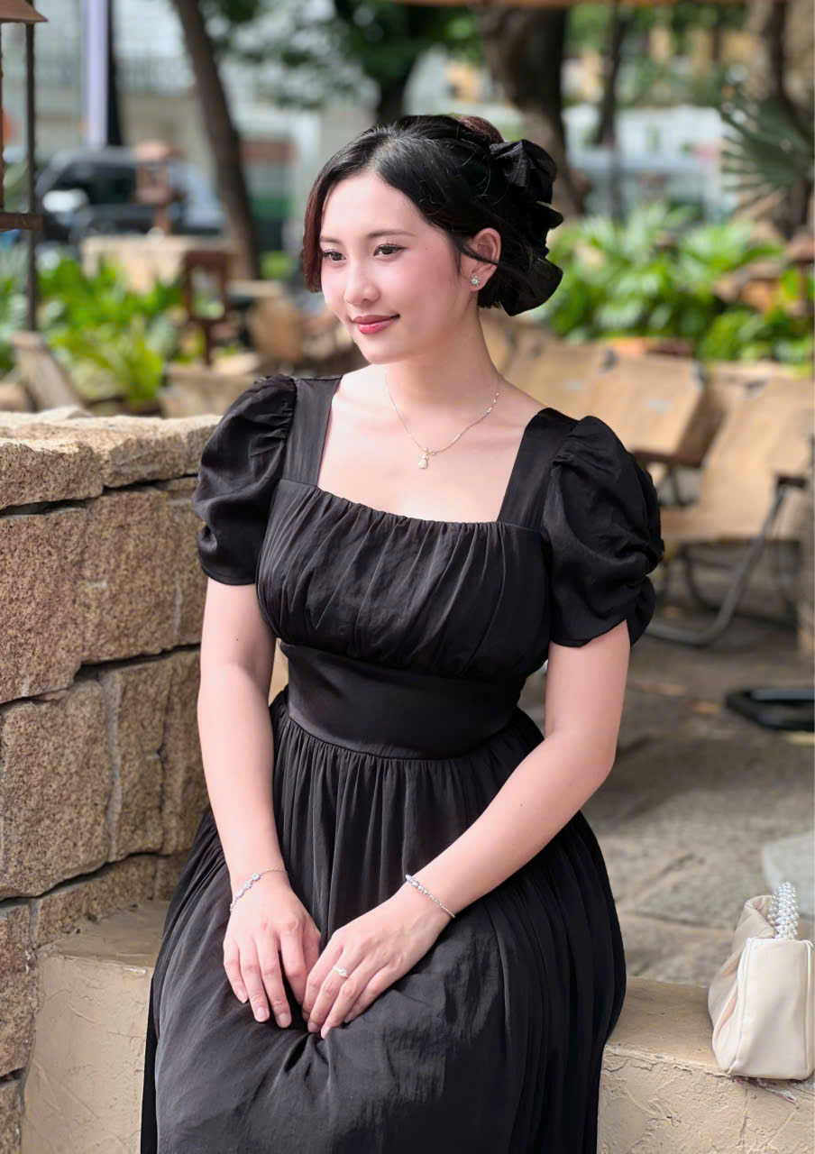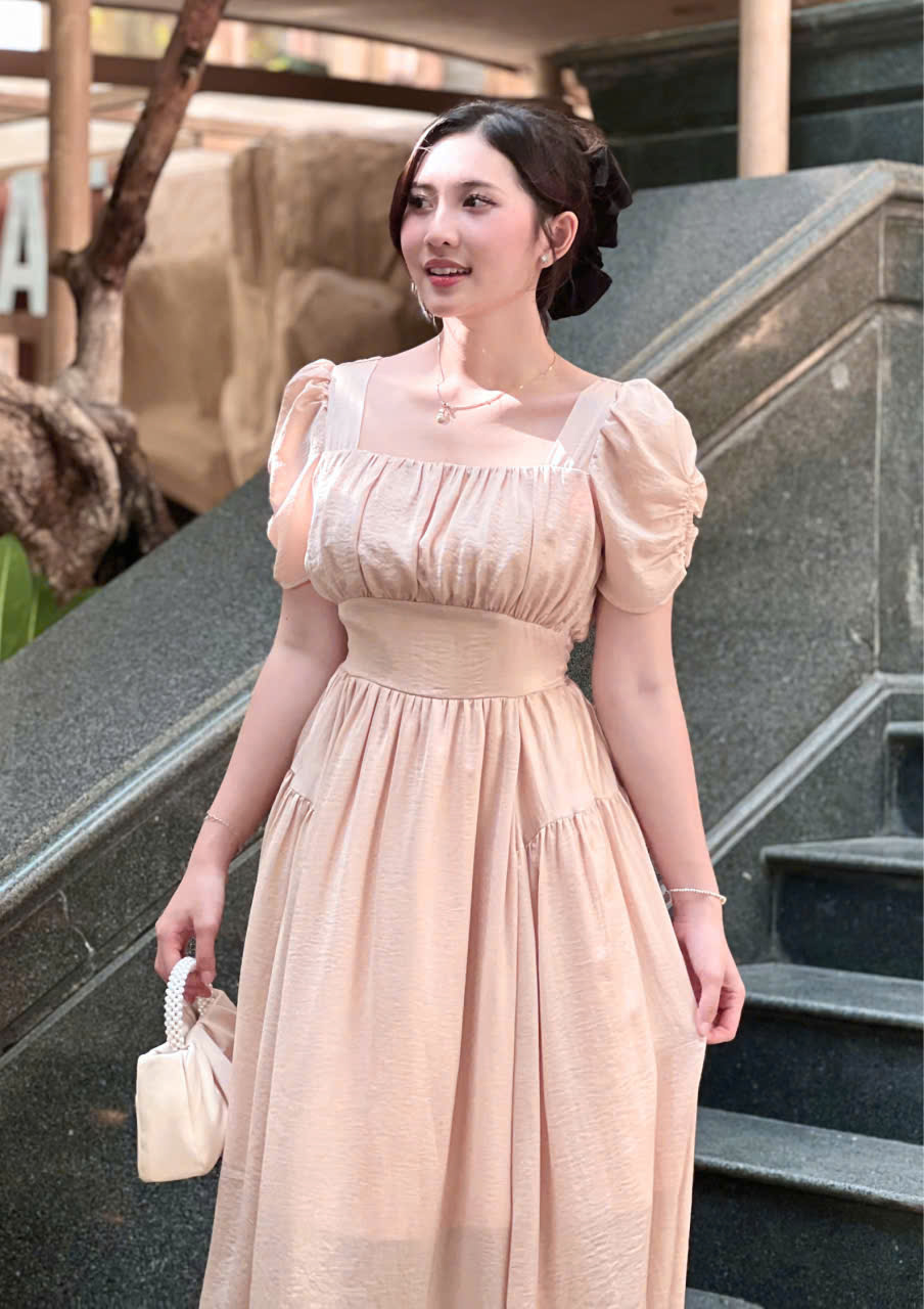 Thiết kế đầm dáng xoè thanh lịch, nhẹ nhàng nhưng vẫn đủ nổi bật cho những dịp thường ngày hay gặp gỡ. Điểm nhấn nằm ở phần cổ vuông kết hợp tay bồng mềm mại, giúp tổng thể thêm phần nữ tính và cuốn hút. Form váy xoè vừa phải mang lại cảm giác thoải mái, bay bổng khi mặc.