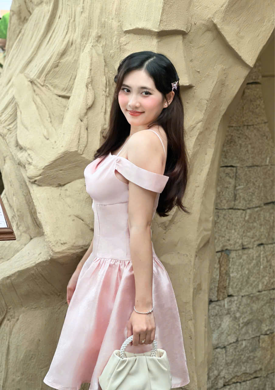 Lumière Touch Dress - Nàng thơ ngọt ngào của nhà HQM, mang vẻ đẹp tinh tế và cuốn hút, phù hợp với nhiều phong cách và độ tuổi. Dáng váy xoè ngắn kết hợp hai dây thanh mảnh cùng chi tiết trễ vai giúp tôn lên bờ vai mềm mại một cách nhẹ nhàng. Điểm nhấn charm bướm đính ngực được xử lý tinh xảo, góp phần hoàn thiện tổng thể sang trọng và thu hút.