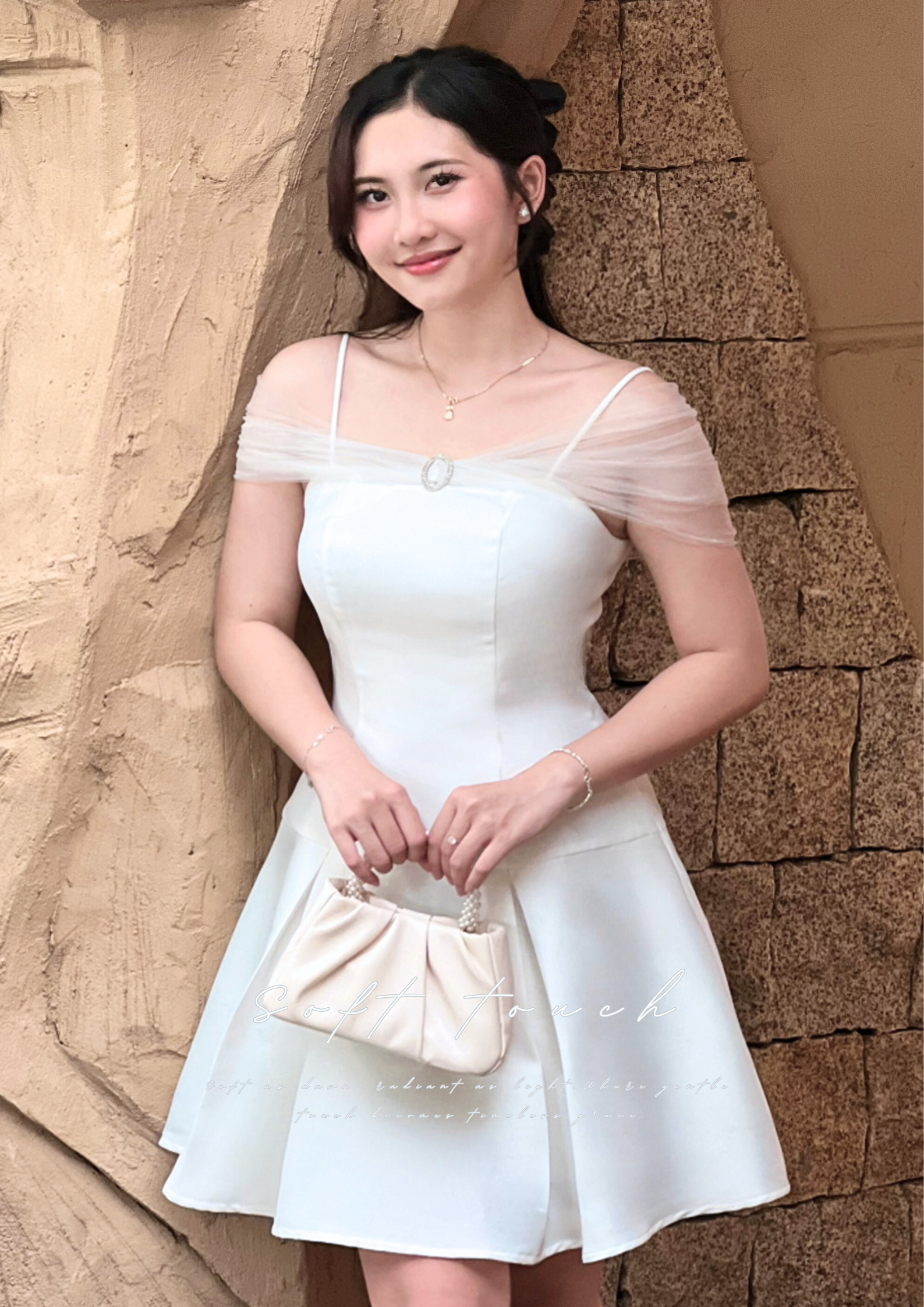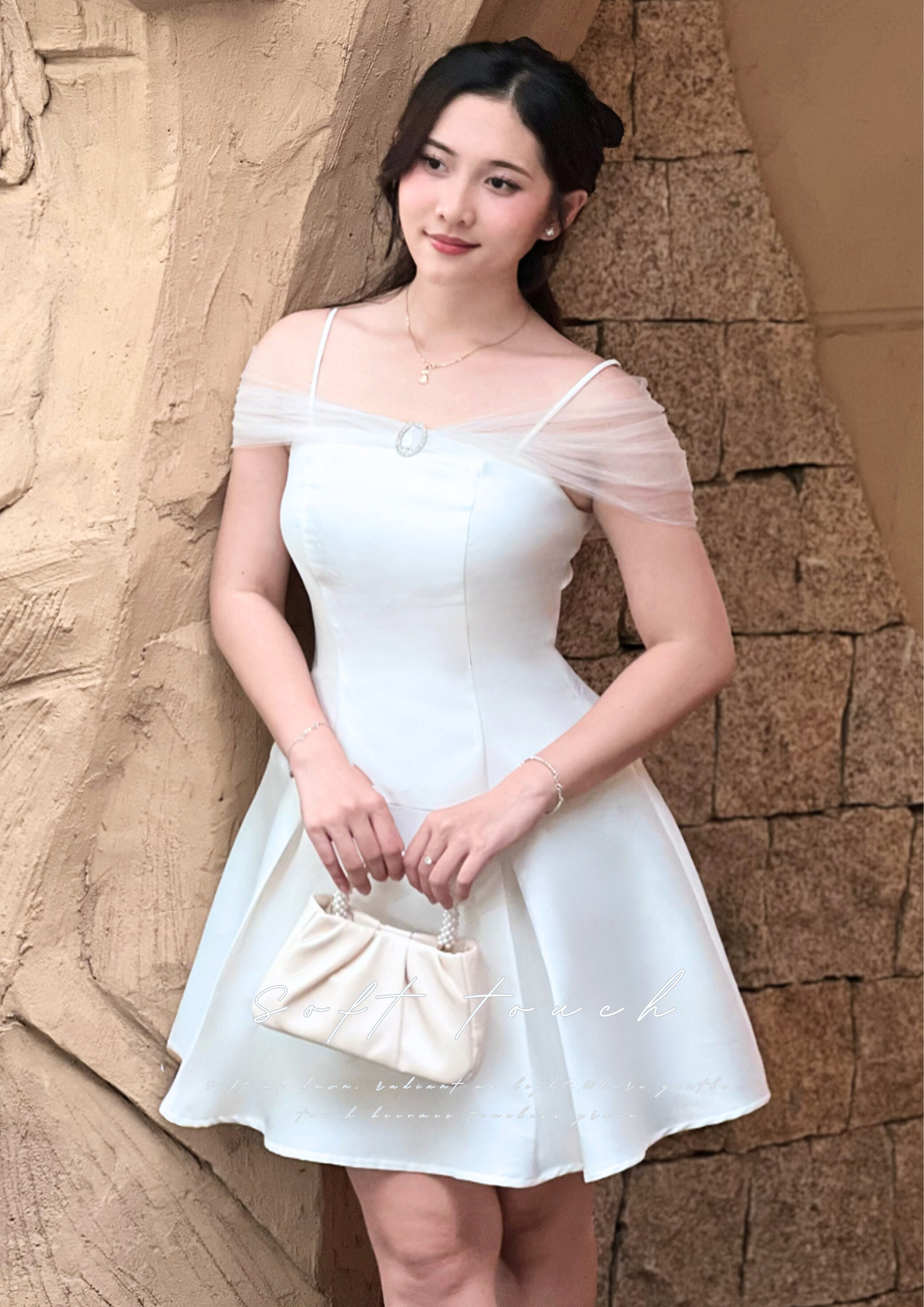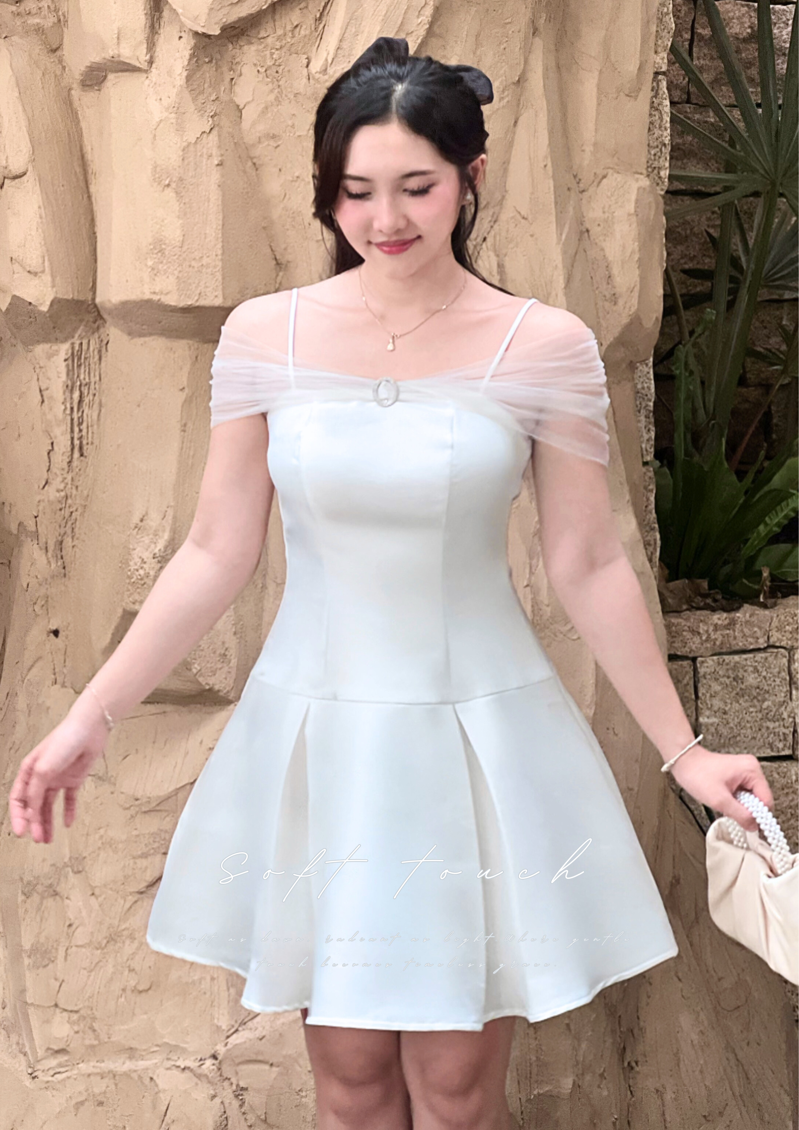 Thiết kế dáng xòe nhẹ nhàng, tôn dáng uyển chuyển. Hai dây mảnh phối vai lưới gợi cảm, chi tiết charm đá đính giữa ngực mang lại nét sang trọng và cuốn hút - nổi bật trong mọi khoảnh khắc.